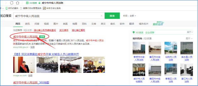 方法二:搜索“咸宁市中级人民法院”进入官网操作